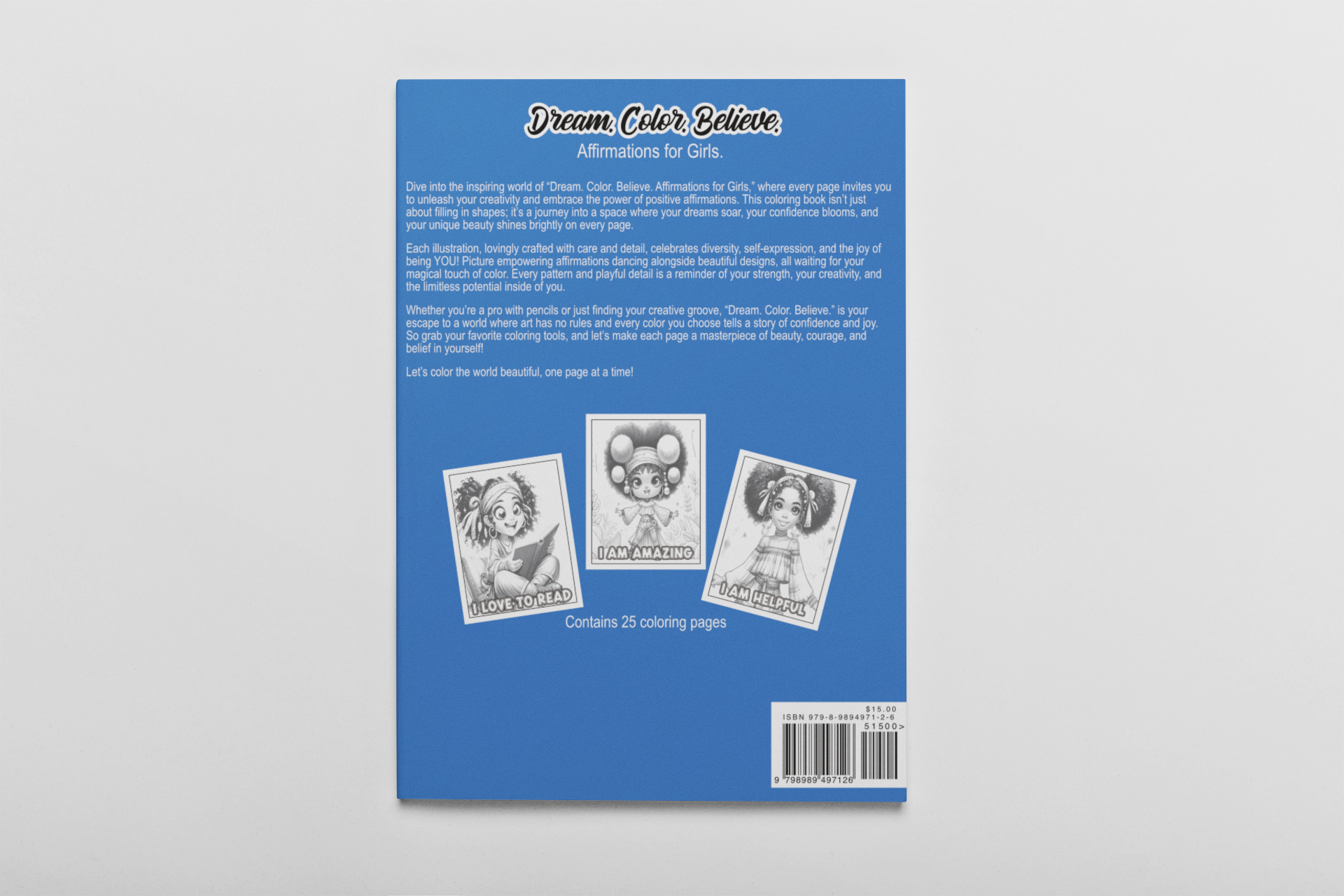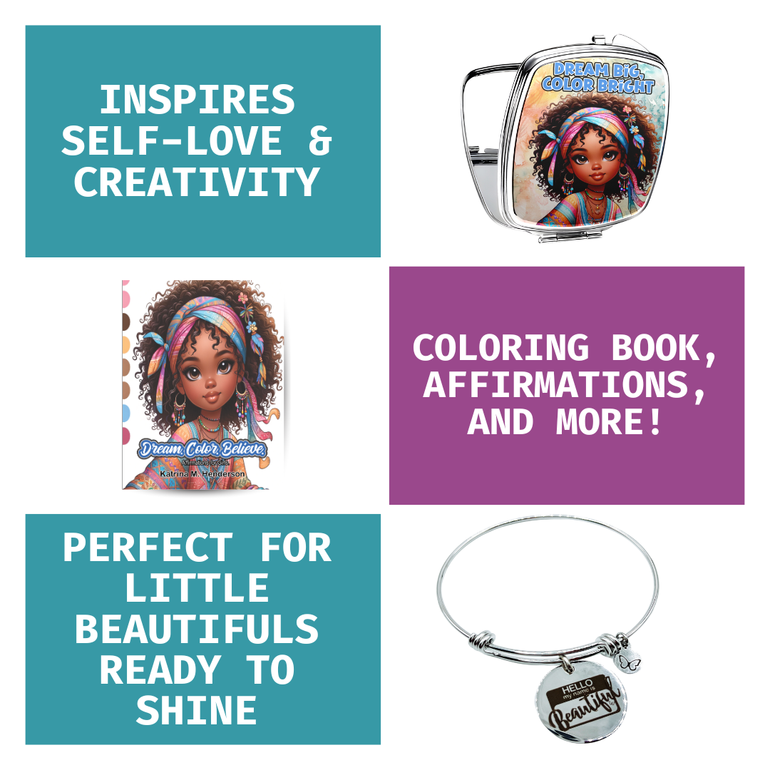 - Dream. Color. Believe. Affirmations for Girls Coloring Book – This isn’t just any coloring book; it’s an invitation to explore self-expression, confidence, and kindness. Each page invites her to color her dreams into reality while being inspired by uplifting affirmations designed just for her. Perfect for coloring her dreams into reality, this book is a playful yet powerful tool for self-love. Size - 8.5x11