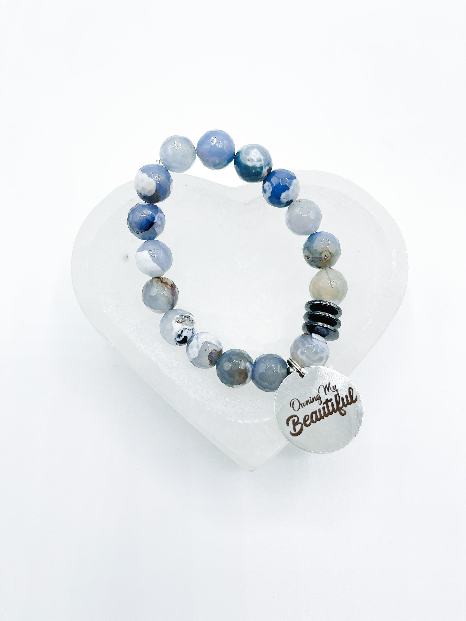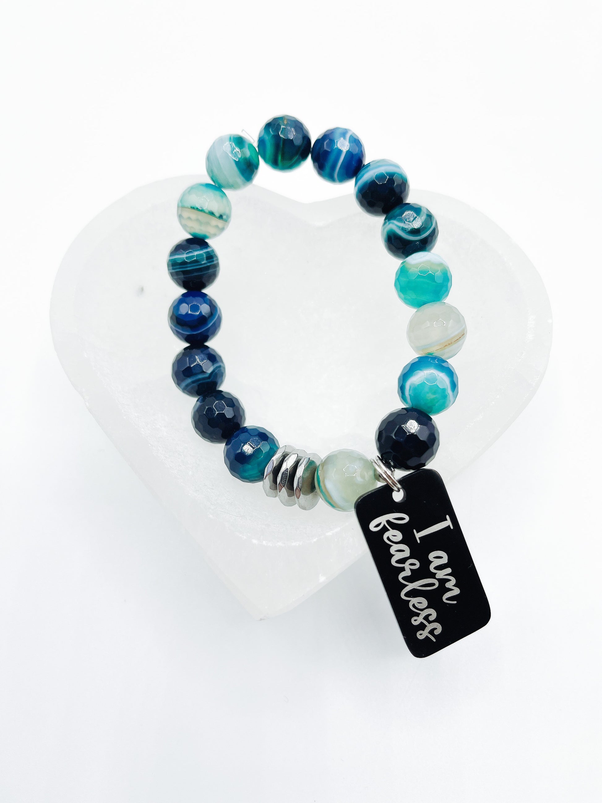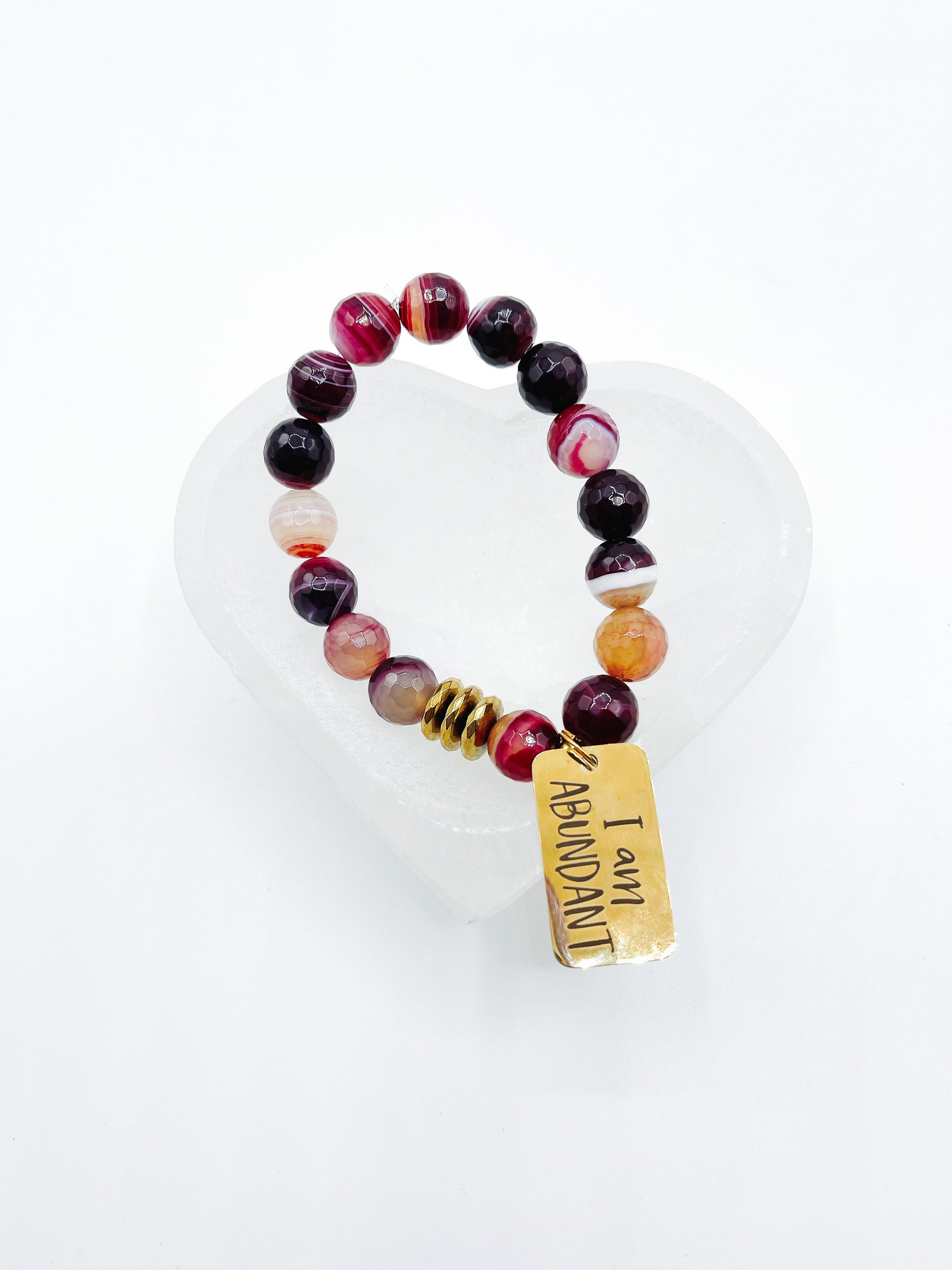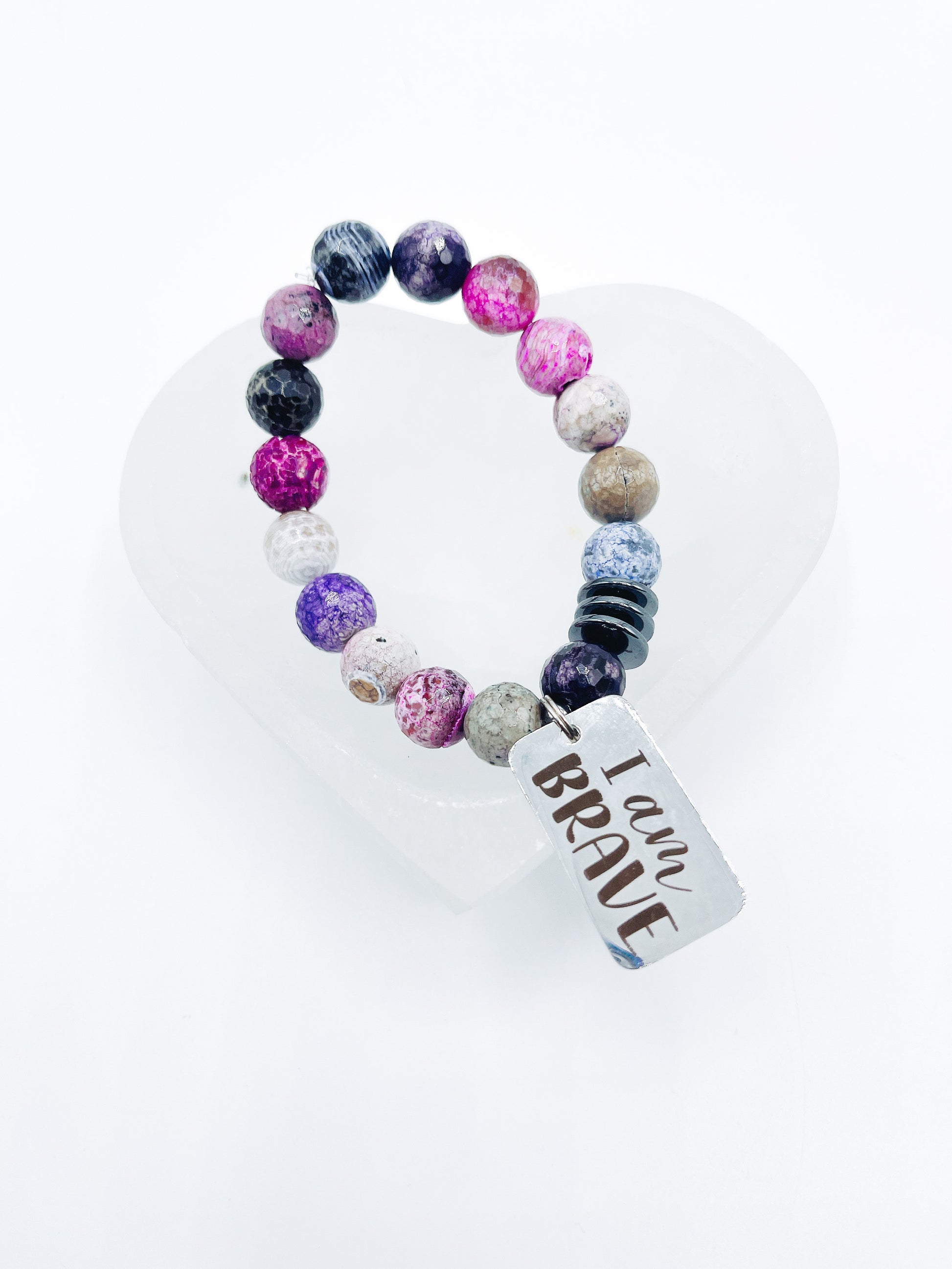 - Agate - helps manifest divine through actions and assists one in taking decisive action. It’s a stone of creativity and expression. It promotes inner stability, composure and maturity