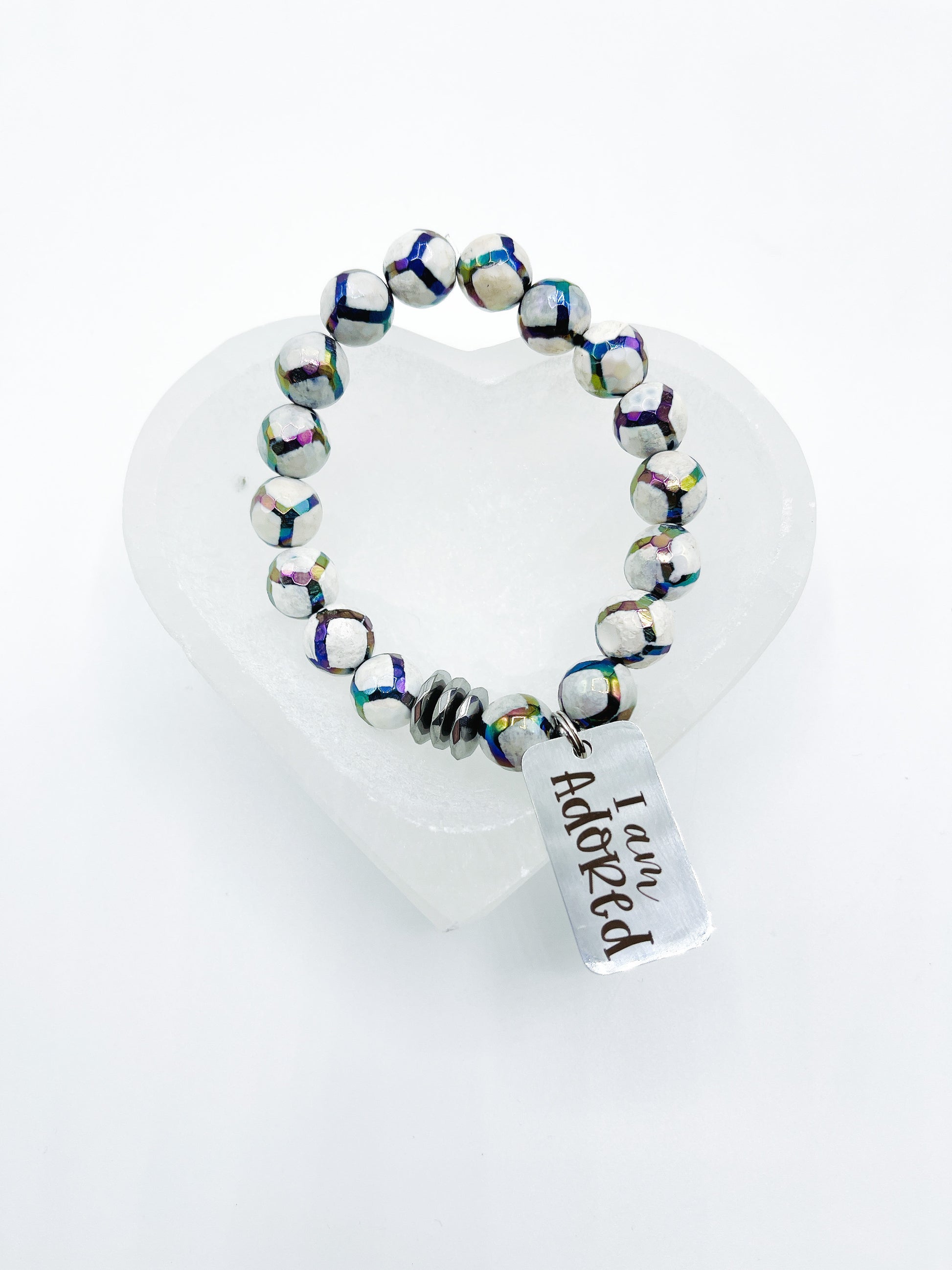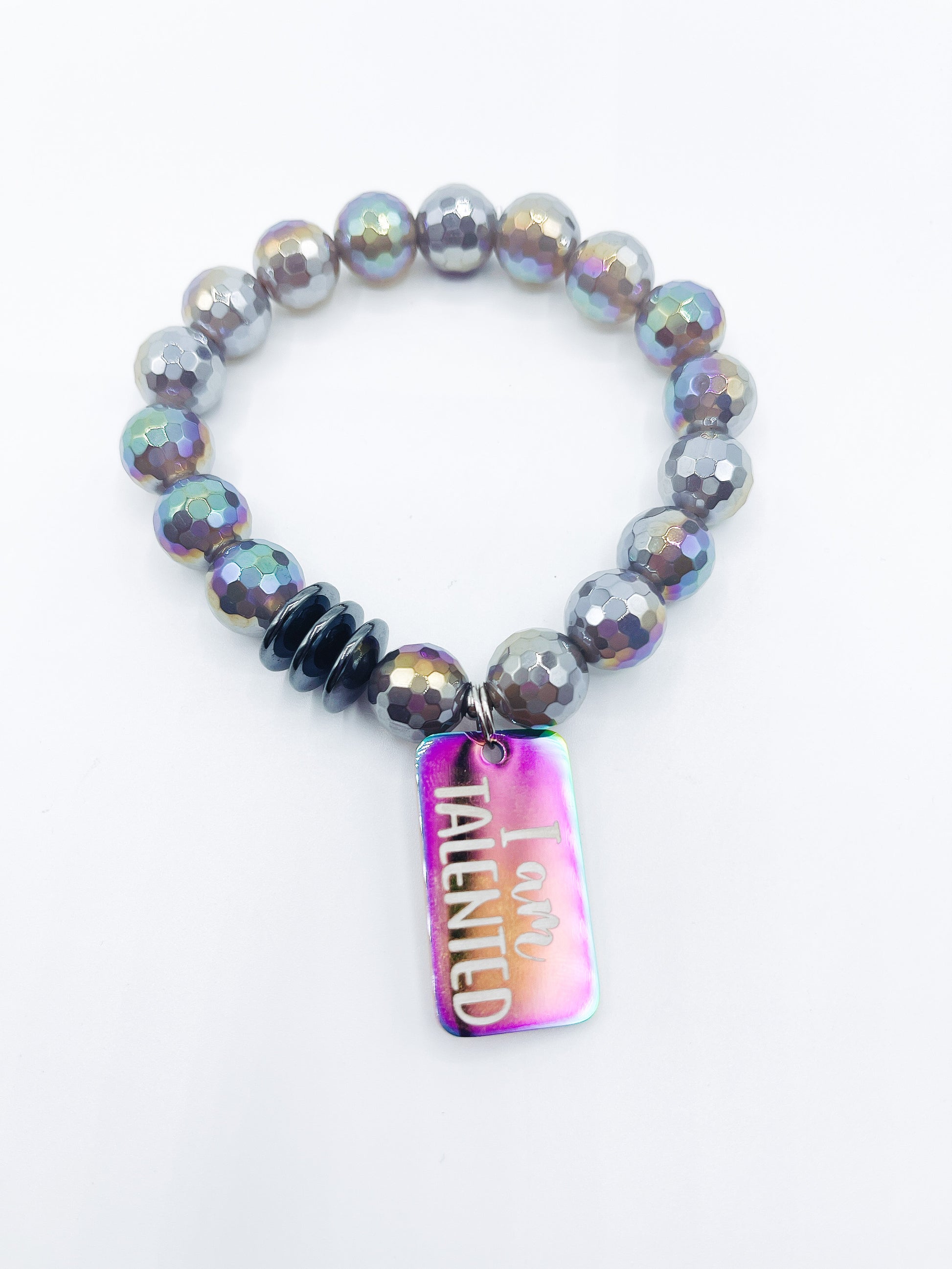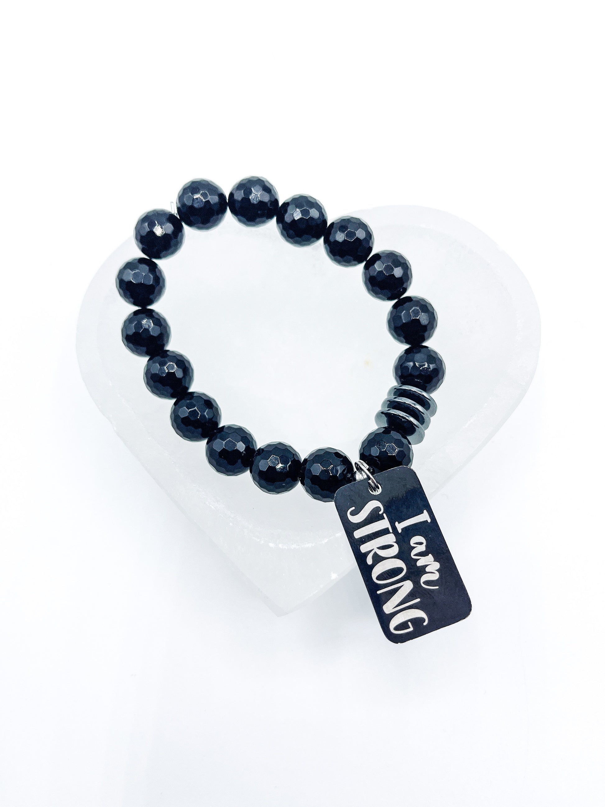 - Hematite spacers - helps to absorb negative energy and calms in times of anxiety, stress or worry - very protective stone and is great to carry to helps you stay grounded